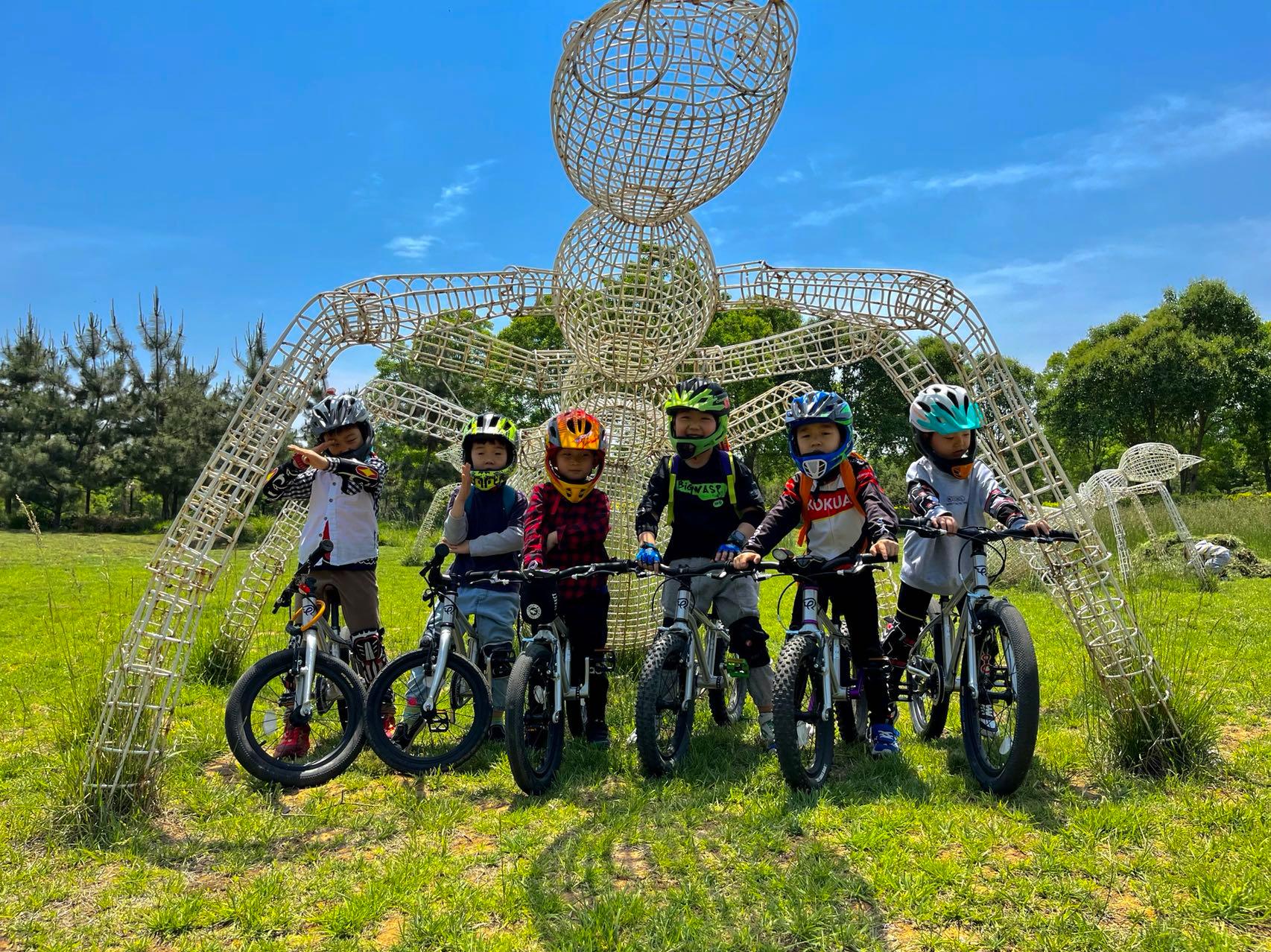 9:20环公园骑行,过程中穿插基础的自行车骑行教学和注意事项,提高孩子们的车感和安全意识;