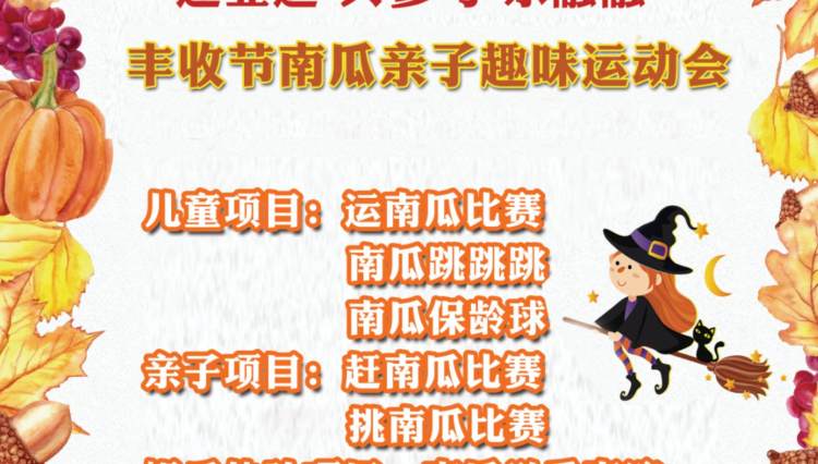 三、报名方式:海报+文字:“迎亚运、共参与、乐融融”快来参加TH运动馆万圣节南瓜主题亲子趣味运动会,得趣味体验课!并收集38赞,即可报名参加。