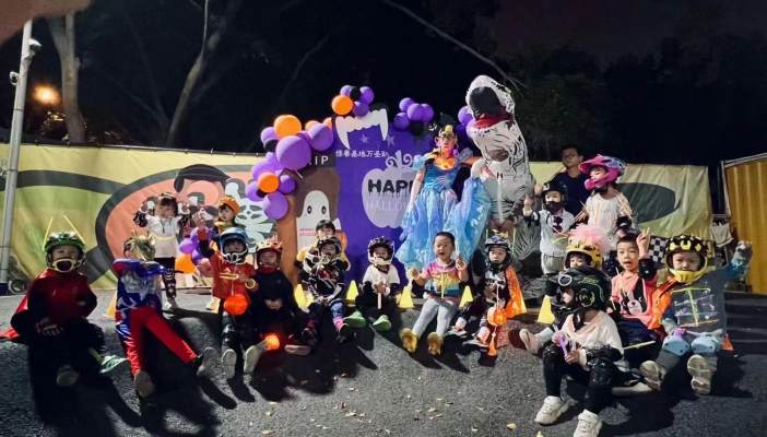 然后,骑上我们的小摩托开小火车去讨糖咯!请小朋友们带上大大的糖果袋,看你可以讨到多少个糖?